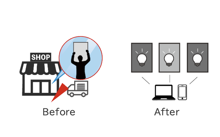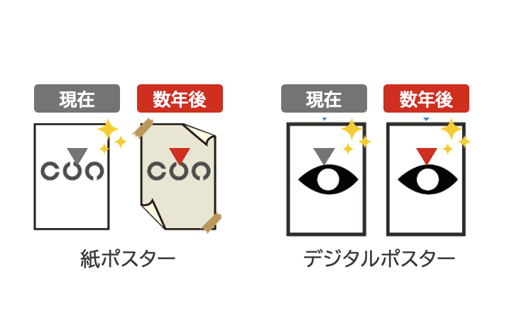 液晶モニターにはない紙ポスターの利点はそのままに、デジタルならではのメリットが加わります。